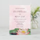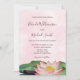 This elegant floral wedding invitation features a watercolor painting of a lotus flower on a pink watercolor background. At the reverse side is a scannable qr code for your wedding website.