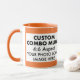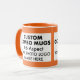 ORANGE 4:6 landscape aspect ratio double image frame custom Combo Mug for photo or logo, 11 oz., 3.2" diameter x 3.8" high, with ORANGE background double image frame (two individually customisable design areas) providing maximum coverage of the mug in ORANGE. See store for more templated font options. The background colour has been chosen to closely resemble the combo mug inside and handle colour but may not match exactly, due to the difference between printing and enamel tones.