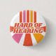 Let others know about your special needs with this groovy hard of hearing badge. Features the slogan 'Hard of Hearing' in a retro serif font, on a stripey orange, yellow and pink backdrop. A faux scratched effect makes the badge look like it came right from the 70s! Personalize this product with a variety of fonts, colors, and graphics, in Zazzle’s editor. Professionally printed by Zazzle on scratch-resistant plastic. For help & matching products, contact Jessica Amber via Zazzle messenger. Design © Jessica Amber, 2026.