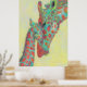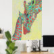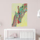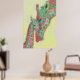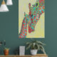 An affectionate motehr and baby giraffe in whimsical shades of orange, yellow and aqua. This print is also availible in other colours.