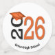 Graduation 2026 in orange and black school colours on a white background.