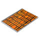 A cool and funky orange and black african tribal pattern. Orange oddly shaped rectangles and squares with a pottery texture on a black background. Could also be seen as an old bookcase pattern.
