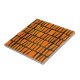 A cool and funky orange and black african tribal pattern. Orange oddly shaped rectangles and squares with a pottery texture on a black background. Could also be seen as an old bookcase pattern.