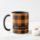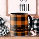 This modern farmhouse buffalo check coffee mug in Halloween colours orange and black is perfect for sipping coffee, hot cocoa or spiced rum. Custom text line features a small orange heart. Leave the words 'Happy Halloween' and add your family name or change out the entire text for your favourite seasonal quote. Order today for yourself or purchase for your favourite Halloween lover.