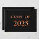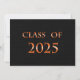 Class of 2025 card with black texture for the background and orange for the name. The back is a black texture with orange lettering for the graduation announcements.