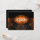Orange and black graduation invitation with light and dark orange stripes and a orange ribbon going across showing the year of graduation. The back of the card is black with light orange font for people to fill in the graduation announcements.