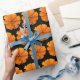 Orange and Black Marigold Flower Pattern Wrapping Paper