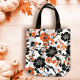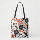 Orange and Black on White Fall Floral Tote Bag