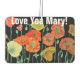 Orange and Black Poppies Decor Love You Woman's Name Car Air Freshener. A glorious cushion design. Designed from my original watercolor paintings, that I painted from my own flower garden.