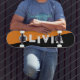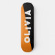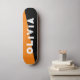 simple orange and black skateboard for him, for her or for them is your personalized name in a bold funky and grunge distressed lettering. Get the prefect abstract design for a teen birthday or Christmas present. Just write your own name for a custom skateboard.