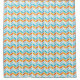 Herringbone pattern design shower curtain in shades of blue and orange with white.