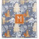 Orange and Blue Chinoiserie Pagodas Monogram Shower Curtain