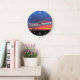 Make your dreams come true at the end of each new day. Get inspired whenever you check the time on this photography wall clock of a stunning sunset of bright reds, oranges, and deep blues. Your choice of a round or square clock face. Makes a great housewarming gift!