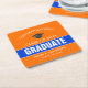 Orange and Blue Custom Graduation Square Paper Coaster