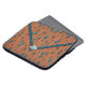 A chic and versatile style statement, the original artwork by ZoeSPEAK on this 15” Laptop Sleeve is done in the style of an envelope clutch bag. It's a pattern looking like ribbed fabric in a burnt orange colour, with spheres emerging through the fabric in shades of yellow orange and aqua blue. The shapes are smudged as if they are falling. The top flap of the purse is bordered by a band of textured blues, with a very thin red orange edge. There is, on the handbag, a bluish silver diamond shaped closure at the tip of the flap. On this is an optional monogram which is set for you to personalise, or delete if you prefer.