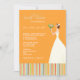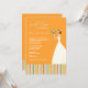 An elegant bridal shower invitation for the modern bride featuring a bride with flowers on a orange background and colourful stripes at the base. Available in alternate colours. Please contact us if you are looking for another colour combination. Matching thank you cards, favours and postage also available.
