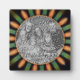 Orange and green rays abstract art design with emanating coloured aura energies frame add your own photo easel back plaque. Design by Susan.