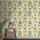 This peel-and-stick wallpaper showcases a charming floral design featuring vibrant orange and yellow blossoms with deep green leaves on a soft pastel background. The delicate botanical pattern is enhanced with intricate details and golden accents, creating a sophisticated yet cheerful ambiance. Perfect for adding a pop of colour and elegance to living rooms, bedrooms, or accent walls, this wallpaper is easy to apply and remove, making it an ideal choice for renters or anyone looking for a quick, stylish upgrade.
