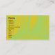 A business card template with an abstract background with a subtle blend of orange and green. Perhaps a little like light refracting though coloured glass. Ready to be customised with your details.
