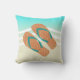 Orange And Green Flip Flops Aqua Beach Waves Cushion