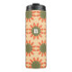 Orange and Green Retro Flower Pattern Monogram Thermal Tumbler