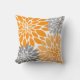 Orange and Grey Chrysanthemums Floral Pattern Cushion