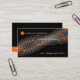 Orange and grey crossed curved lines and circle modern custom business card template featuring two tangerine orange and several grey crossed curved lines on black. A fully customisable template perfect for professional use.