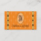 Orange and Peach with Monogram Gold Ornate Stripes Business Card