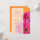 Bright orange and fuchsia pink gerbera daisy flower wedding invitation. This invitation is bright, cheerful, and fun. This pink and orange daisy wedding invitation is perfect for a spring wedding, a summer wedding or a wedding with a fuchsia or hot pink and bright orange themed wedding. Gerber daisy flowers are great favourites of everyone. In this case, the daisy flower is a magenta pink colour and is covered in water droplets as though it has just rained. It's paired with pumpkin orange for a bright and bold look. There is a quote on the back that you can also personalise. You can personalise all the wording on this orange and pink gerber daisy wedding invitation. In addition to a wedding, this invitation would also work well for a variety of other special occasions. All you need to do is change the text.