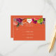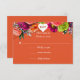 Bold orange with bright and colourful roses. Artistic wire element add a touch of whimsy, white heart centre, White lettering on orange-age colour.