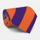 This purple and orange diagonally-striped tie will add a little pizzazz to your wardrobe. The same pattern is on both sides of the tie.