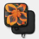 Safely handle baking trays, cookie sheets and muffin tins from the oven with this pot holder with black trim that features the photo image of an orange and dark red, bicolor Asiatic Lily bloom. A lovely, floral design! Select your pot holder backing style.