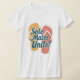 The t-shirt design features a pair of illustrated flip-flops in a playful and summery style. One flip-flop is orange, and the other is red, both decorated with white polka dots and white straps. The flip-flops are positioned side by side, slightly overlapping, creating a sense of unity. The design includes the phrase "Sole Mates Unite!" in bold, blue, cursive-style lettering, playing on the pun between "sole" (as in shoe soles) and "soul mates." The overall design gives off a fun, beachy, and cheerful vibe, making it perfect for summer wear or couples and friends who love a lighthearted fashion statement.