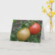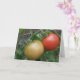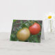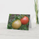 This beautiful greeting card features a photograph of an orange and a red cherry tomato growing on a tomato plant in a suburban garden. The photograph was taken using macro photography for a detailed result. The inside of the card is blank making it suitable for anyone and any occasion of your choosing.
