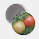This beautiful magnet features a photograph of an orange and a red cherry tomato growing on a tomato plant in a suburban garden. The photograph was taken using macro photography for a detailed result.