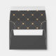 This chic, modern wedding rsvp return envelope features a smoky grey background with an orange coloured world map and matching text. Perfect for the wedding of any couple who loves to travel, or anyone having a destination wedding. The inside of the envelope features an elegant matching pattern.