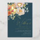 Orange and Teal Blue Spring Peach Floral Wedding Foil Invitation