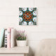 Orange and Teal Green fractal Flower Square Wall Clock