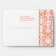 This orange and white damask linen envelope matches the wedding invitation shown below, and is designed to replace the plain white envelopes that come with the invitation and/or thank you cards. Customise it to have your own return address on it. If you require any other matching items, please email niteowlstudio@gmail.com with your request.