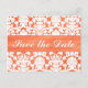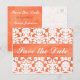This orange and white damask save the date post card matches the wedding invitation shown below. If you require any other matching items in this design, please email your request to niteowlstudio@gmail.com.