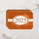 Floral designs surrounding button on top of a white ribbon that has floral designs. Orange cloudy background. The back of the card has a orange background with white lettering for the graduation announcements.