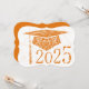 Floral designs on graduation cap, background and year. Orange graduation cap on a white background. The back has a orange background with white lettering for the graduation announcements.