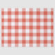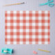 Reddish orange, light orange, and white squares form a bold, buffalo plaid or gingham pattern in this design.