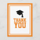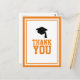 Say Thank You with this Orange and White Graduation Party Thank You Postcard. It features 'Thank You' in orange and a black grad cap surrounded by a white and orange border. The back is blank for your personal message.