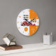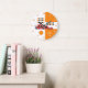 Orange and white clock, with cute red and black ladybirds, for a kid's room, nursery decor.