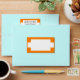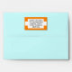 An envelope with a stylish black and white address panel with a drop shadow which gives the illusion of a stick on label. A smaller version of the label is repeated on the back which can be customised with your return address.