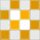 Orange and white large chequered fabric.