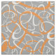 This orange, white and grey loopy geometric pattern fabric features intertwined orange and white oval rings on a medium grey background - by katz_d_zynes