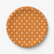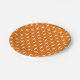 Orange with white patterned paper plates. Cool for Halloween table setting and get togethers.