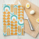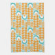 Orange, Aqua, Teal Mid Mod Flowers Pattern Tea Towel